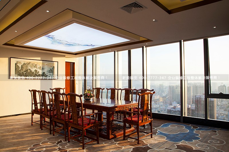 董事長辦公室使用了大量的實木家具,明靜空靈,入內讓人感受到無比的莊嚴而靜謐大包間,空間寬闊,傳統的裝飾造型,與色彩搭配互為融入,讓整個包間莊重而富有溫馨感。