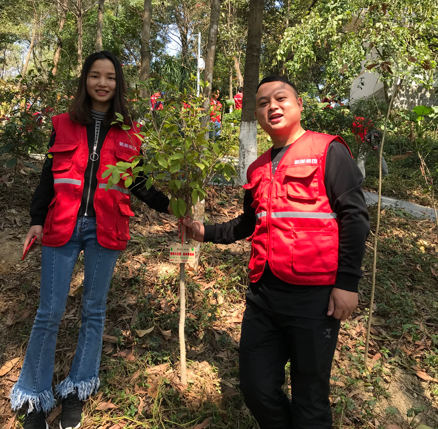 一個個樹坑挖成,一棵棵樹苗的栽下,象征著一份份綠色希望;每一滴汗水的流下,每一鏟泥土的填充,則代表著每一個人的奉獻與關愛。經過一番辛苦的勞動,小樹苗種好了,大家紛紛與小樹合影。