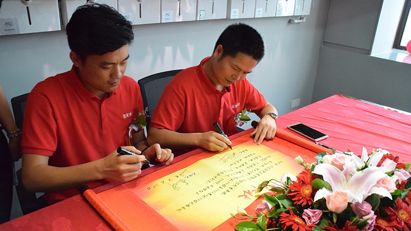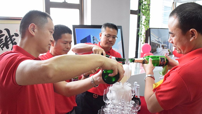 接下來,最精彩的時刻到了。滿滿的香檳環(huán)節(jié),人手一杯,慶祝分公司開業(yè)大吉。而新美集團副總裁黃鼎華與東莞分公司總經(jīng)理胡總更是添上了超級大彩頭,立下1500萬的業(yè)績軍令狀!